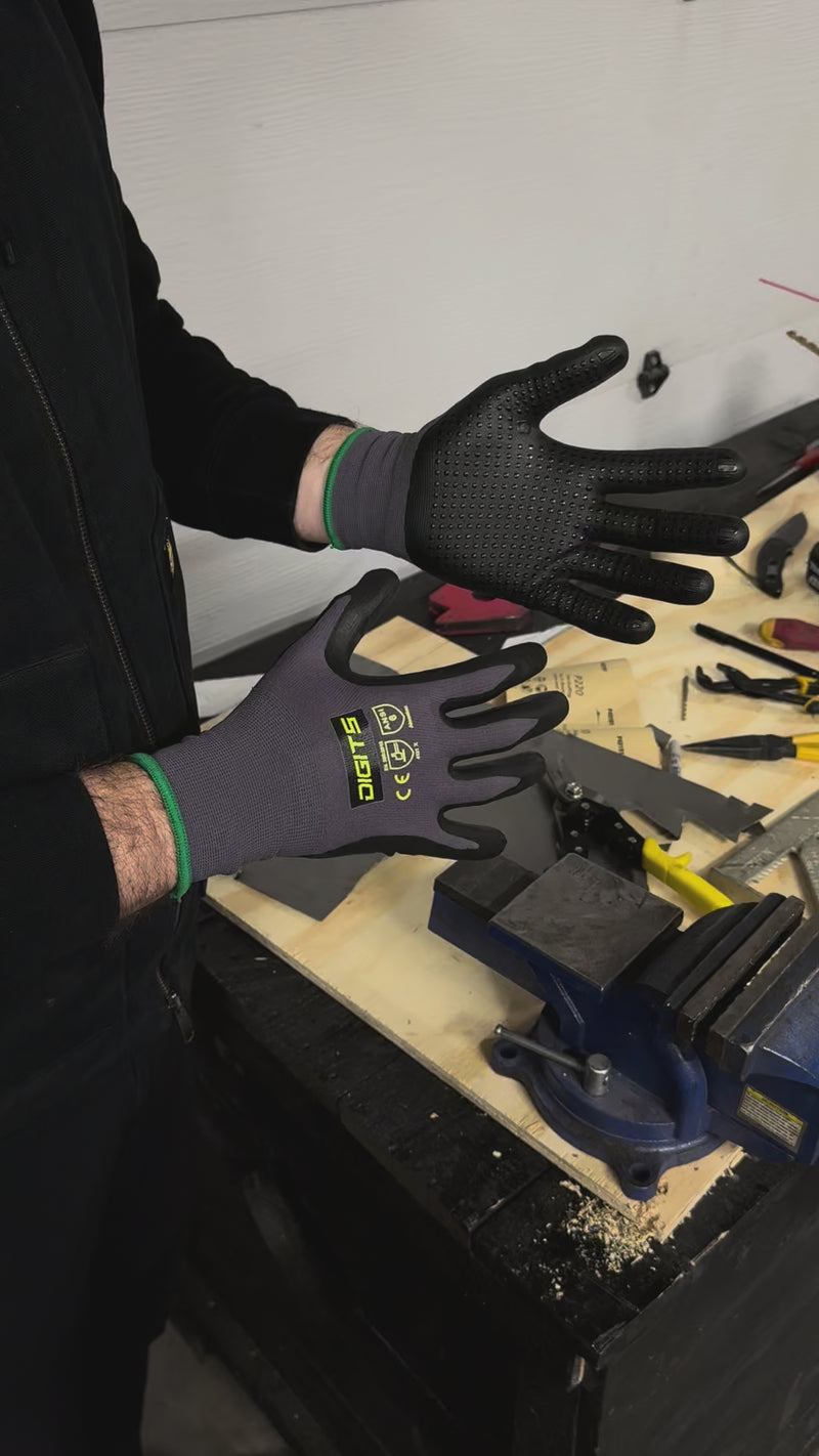 Anti-slip grip dots — Adds extra control for secure handling of tools and materials.